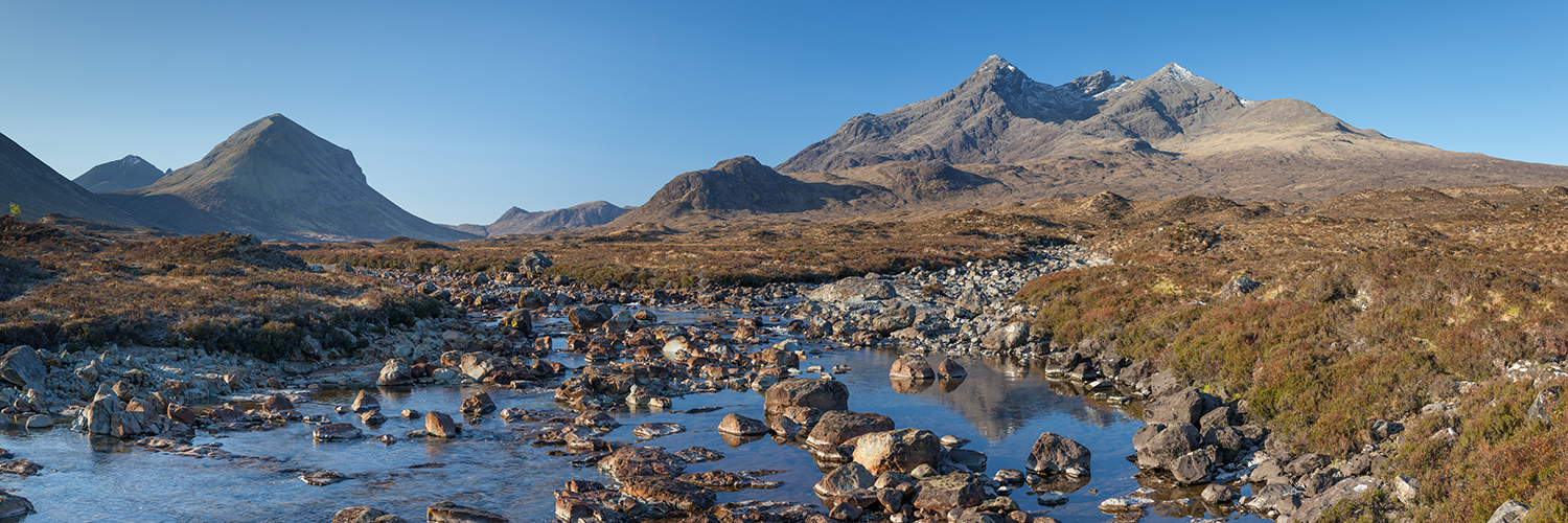 I must confess that my head and my heart have always been drawn to the north west of the Scottish Highlands and so the collection of images displayed here favours the mountains in that part of the country. It is that magical and most infinitely diverse blend of mountain, glen and loch that has so much appeal and challenges the compositional skills of a photographer such as I who seeks to portray the facets of the scene that lies before him. The magnitude of that challenge is amplified by the fact that these mountains can be shrouded in mist for days at a time and then, suddenly, will appear in skies of outstanding clarity only to disappear again with equal rapidity.